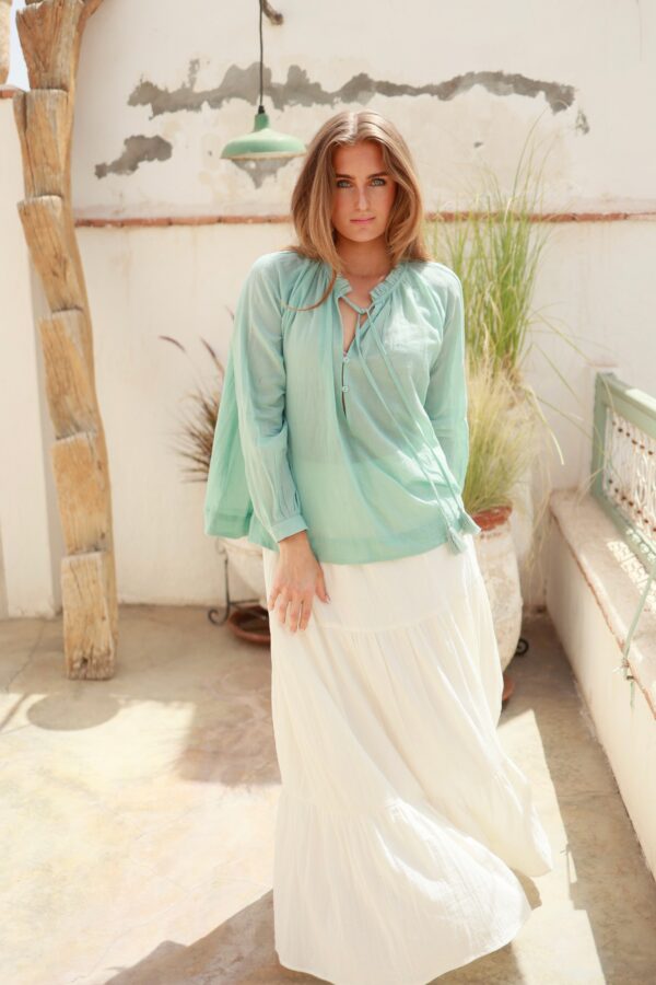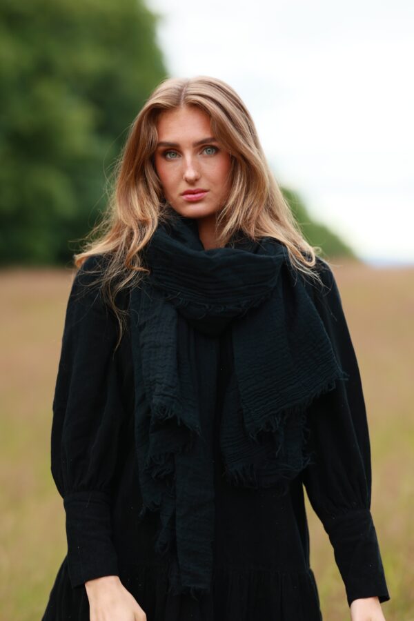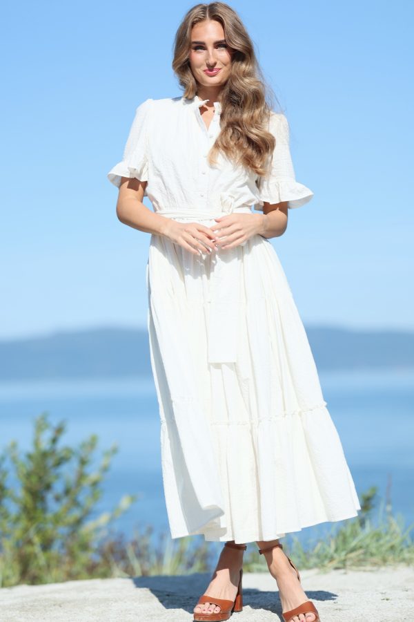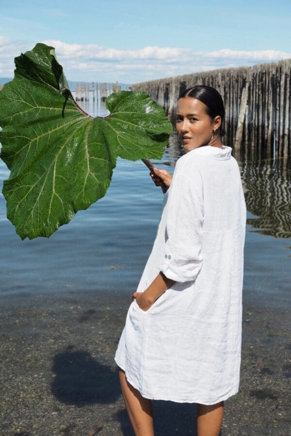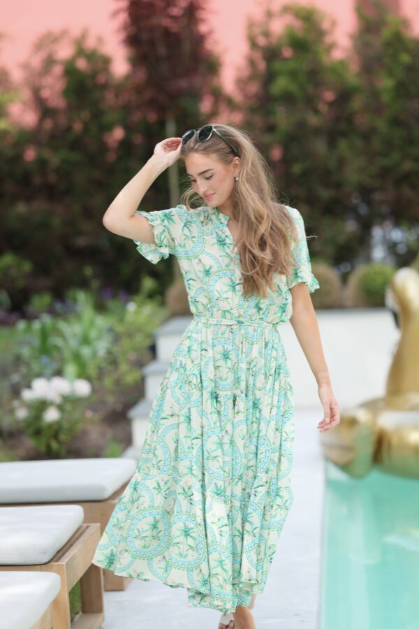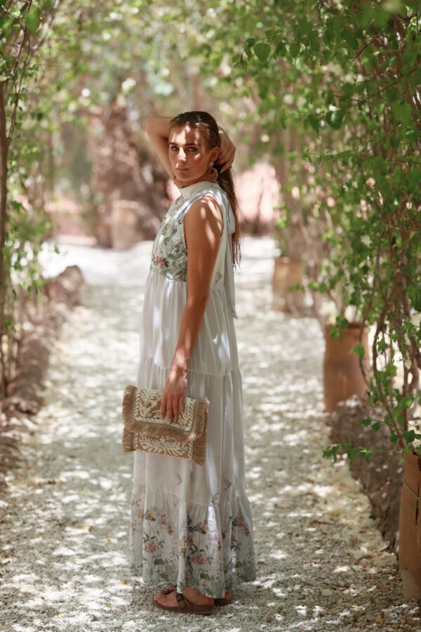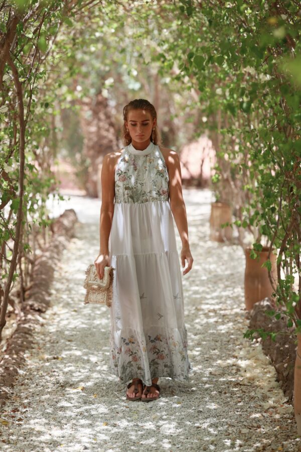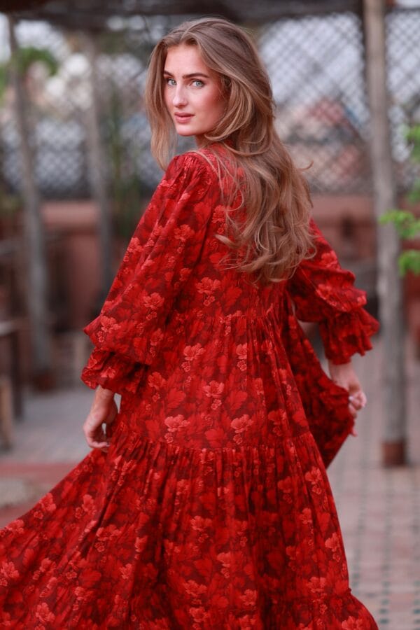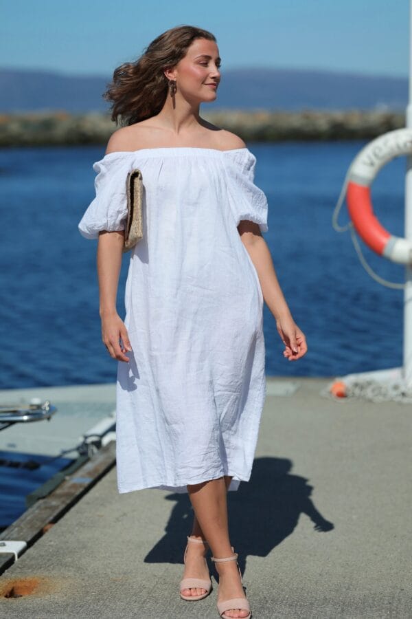 Lotus Dress. Helt fantastisk kjole med de vakreste detaljer over det hele. Gjennombrutte blonder, lommer og knyting i livet for en effortless look. Kjolen er fotsid. Lotus Dress gir deg en perfekt balanse mellom det bohemske og en sofistikert look, som gjør at du føler deg både komfortabel og stilfull til hverdag og fest. Den luftige passformen og de vakre blondene skaper en feminin og avslappet vibe, samtidig som den passer perfekt til både uformelle og litt mer pyntede anledninger.