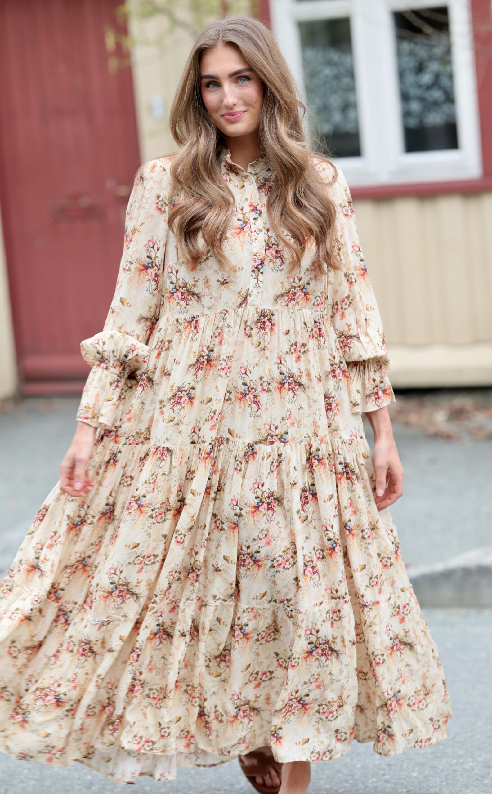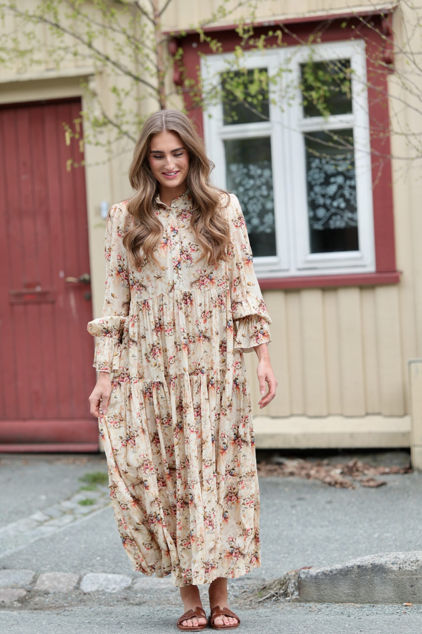 Dette er Ambrosia med lange ermer. Ambrosia er Nectar, rett og slett. Dette er vår mest solgte kjole, nettopp fordi den kler absolutt alle damer. Velg å bruke den med eller uten beltet, for å få den silhuetten du ønsker. Perfekt lengde for en kjole som du kan ta fra dag til kveld. Printet er vårt eget, så du slipper å dumpe borti noen som har en kjole som likner på din… Supermykt og deilig stoff som faller så utrolig fint. Masse vidde i skjørtet. Knapper i front, lange ermer med rysj og avtagbart belte i livet.
