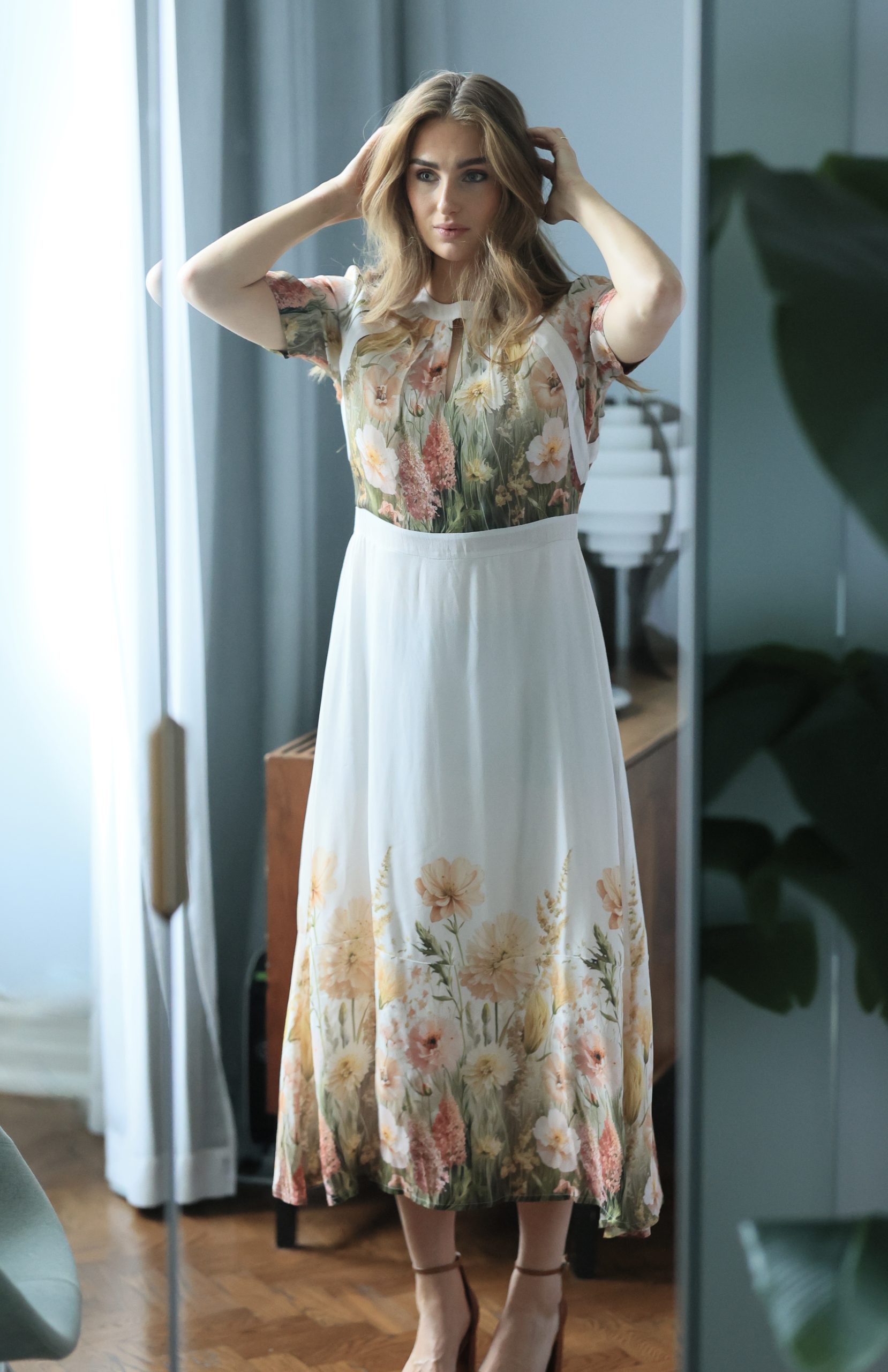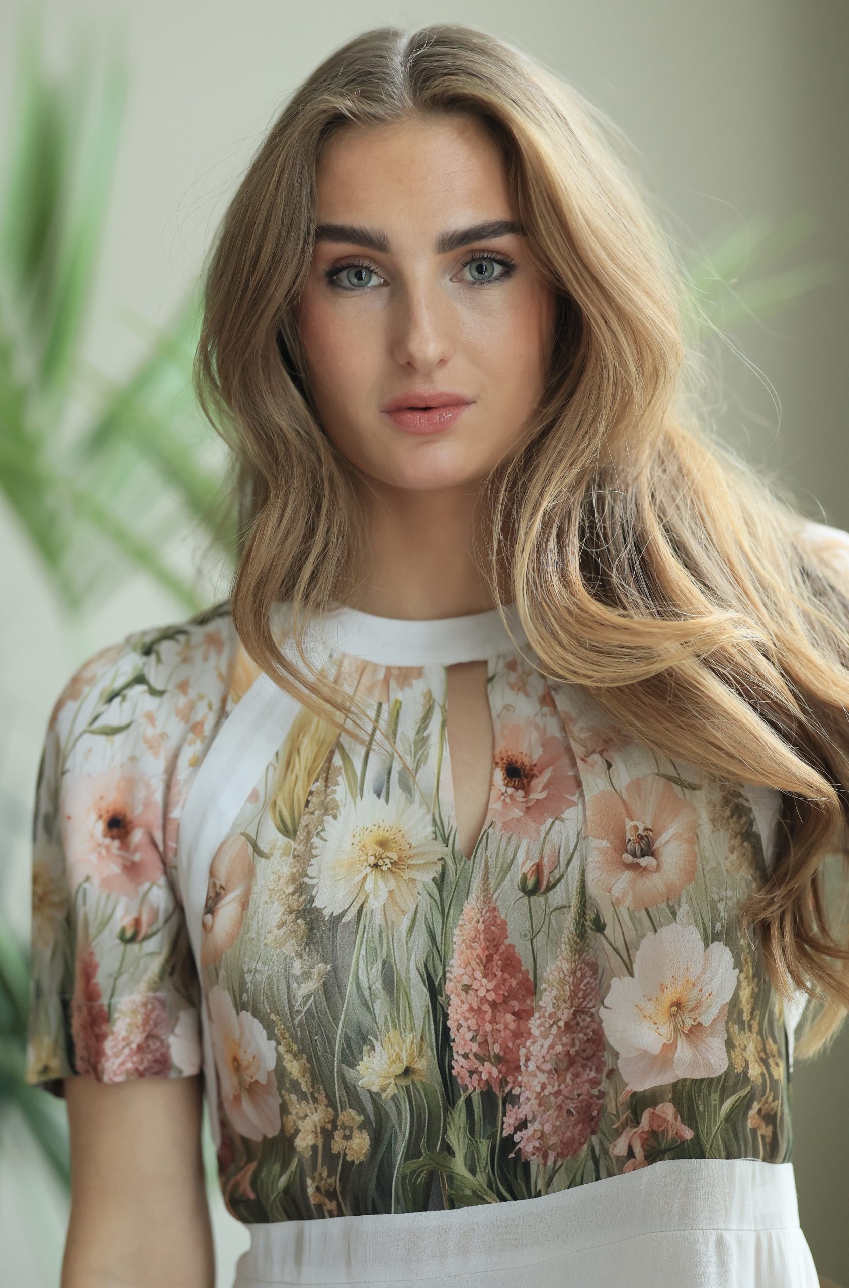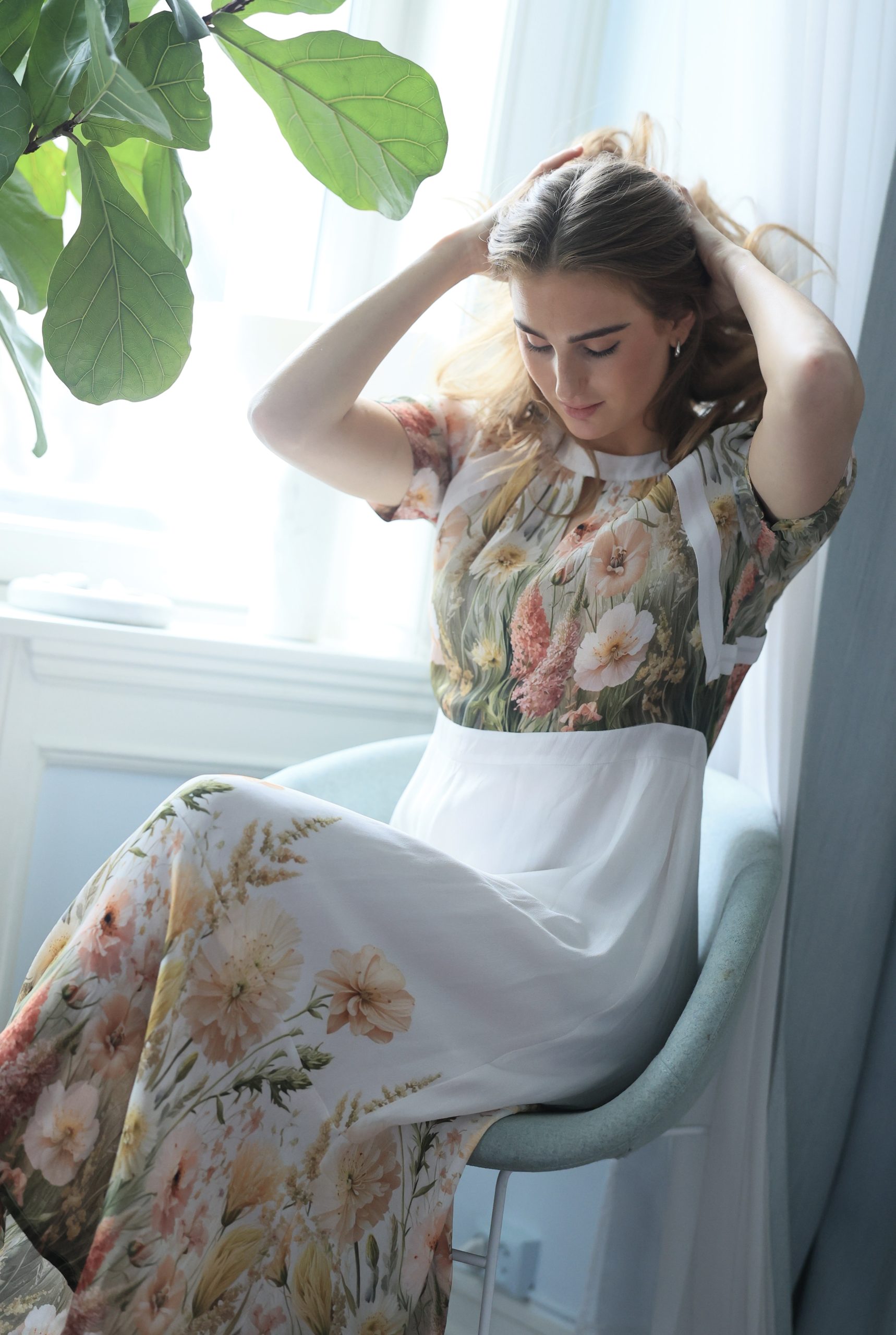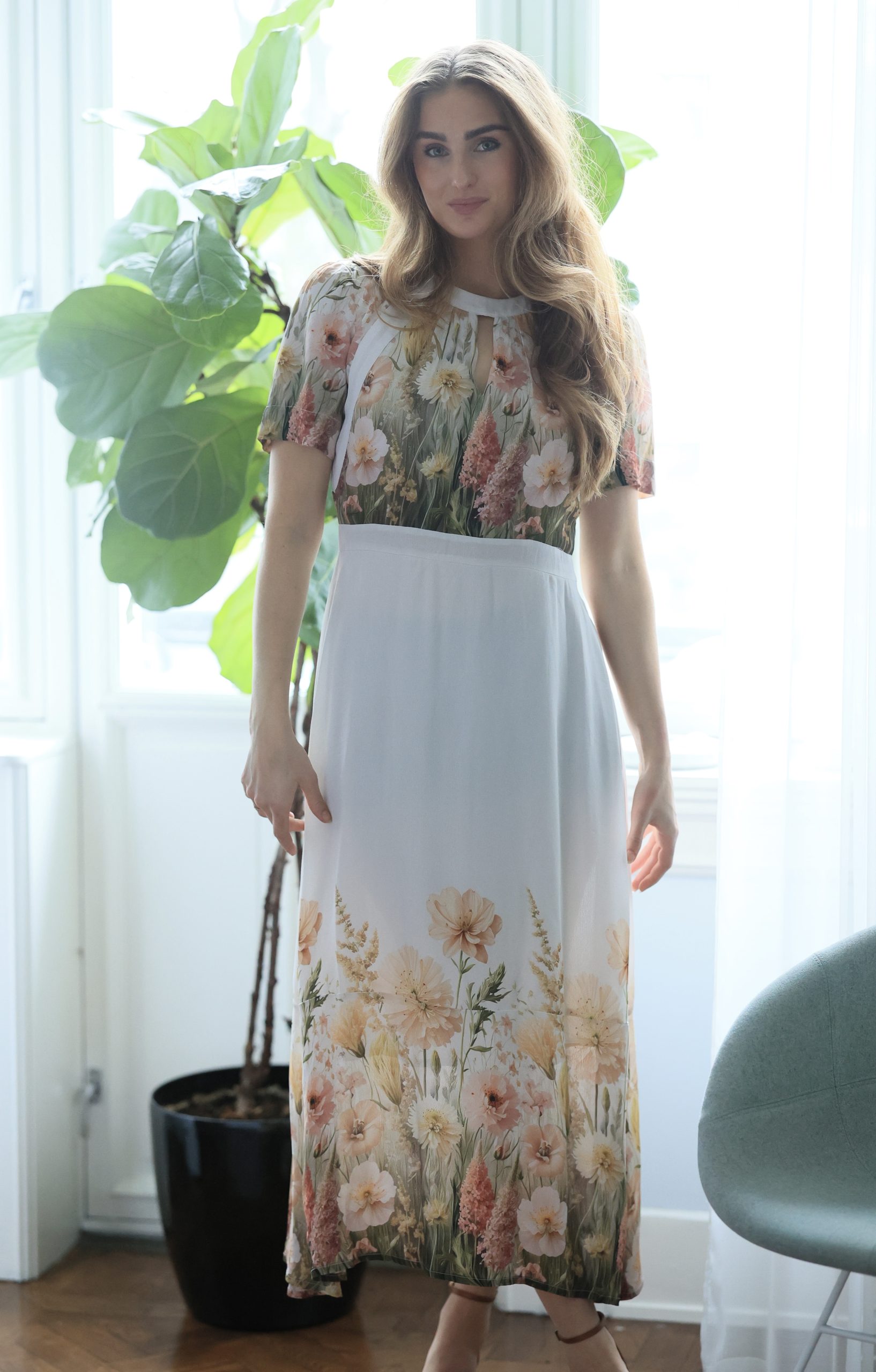En helt nydelig kjole med så vakkert print. Denne skjønnheten fremhever dine beste sider og gir deg en sofistikert look uansett anledning. Laget av kvalitetsmaterialer, sikrer den komfort hele dagen, mens det moderne designet gjør at du skiller deg ut.