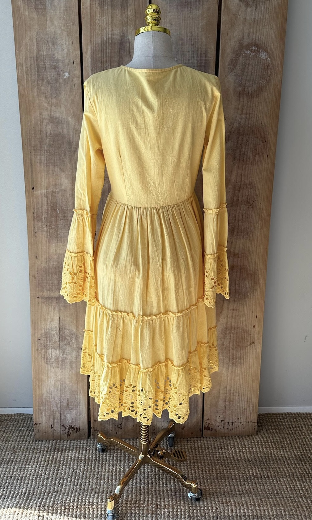 Deilig kjole i nydelig stoff. Blonder på brystet